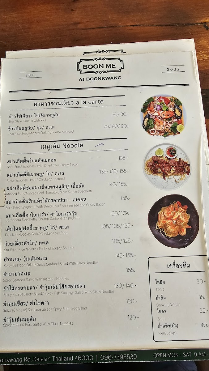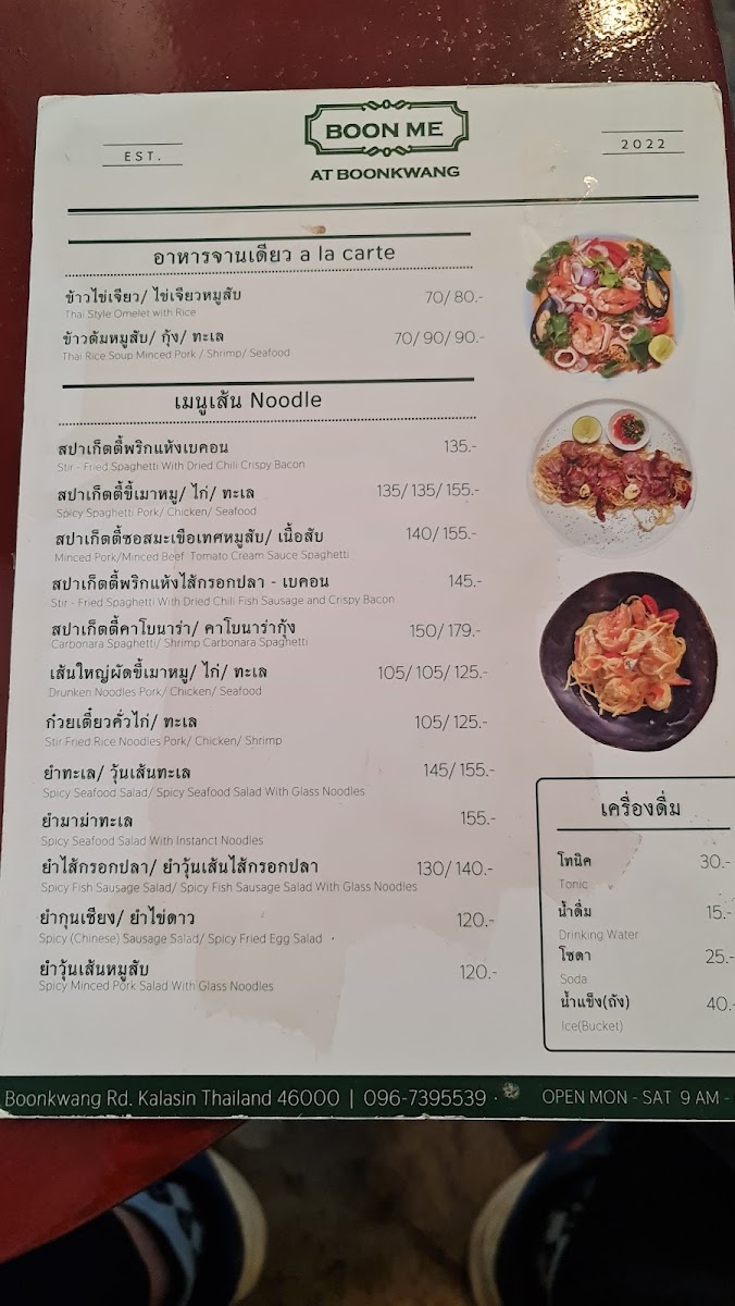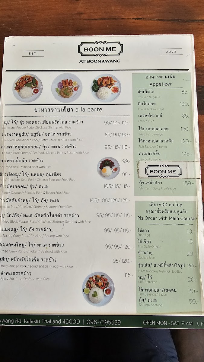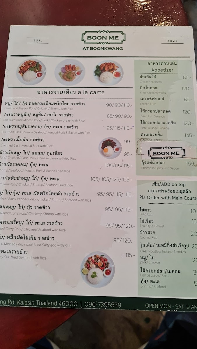 Welcome to BOON ME AT BOONKWANG CAFE, a charming eatery located at 12 Boon Kwang, Mueang Kalasin District, Thailand. This cozy cafe has quickly become a favorite for its remarkable food and inviting ambiance. The decor features a unique blend of unfinished brickwork, enhancing the warm atmosphere, ideal for intimate gatherings or casual meet-ups.